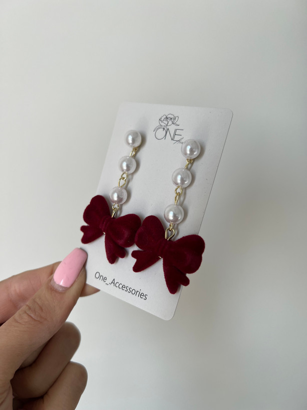 گوشواره مخمل یلدایی ترکیب مخمل پاپیونی و مروارید خیلی جذابه ❤️ میخش ضد حساسیت