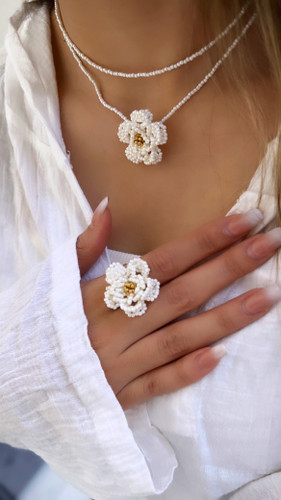 ست گردنبند و انگشتر زنانه گل دار